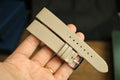 A soft beige suede strap with a matte finish and subtle stitching, offering a natural, rustic appeal.